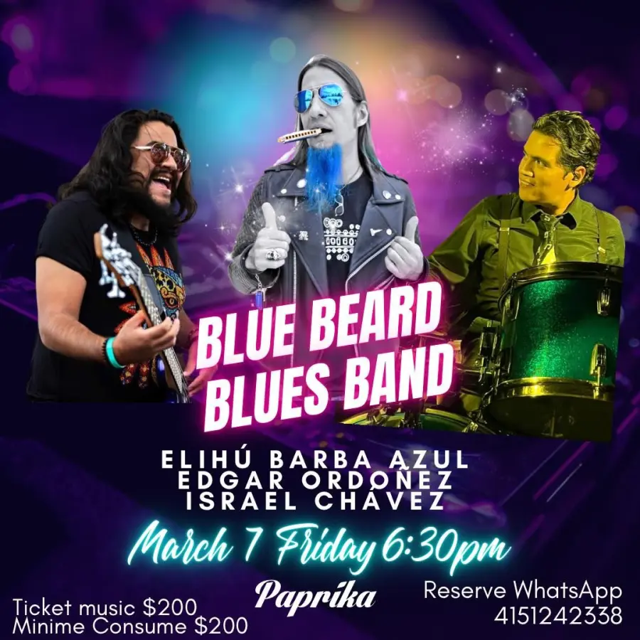 Enjoy a night of Blues with ElihĂș and his Blue Beard Blues Band