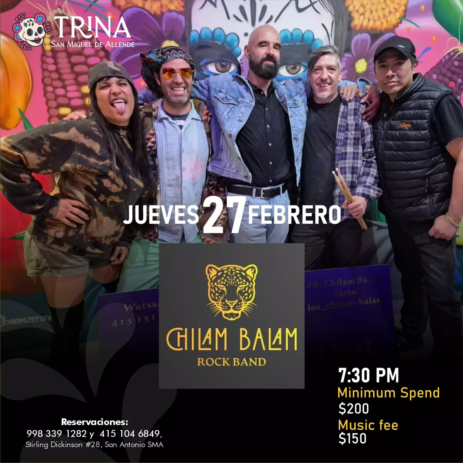Enjoy a night of Rock with Chilim Balam at Trina