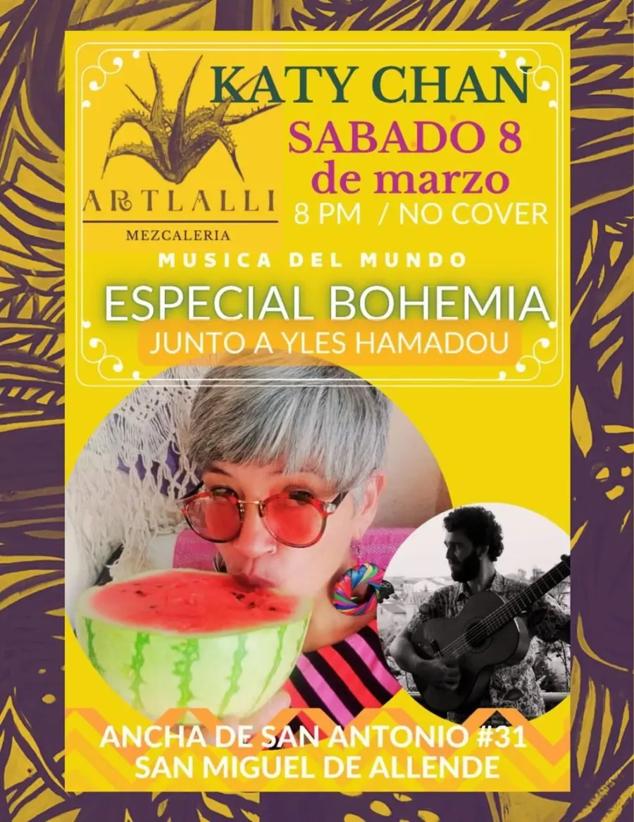 Don't miss Katy Chan and Yles Hamadou in this special of bohemia and world music at Mezcalería Artlalli.