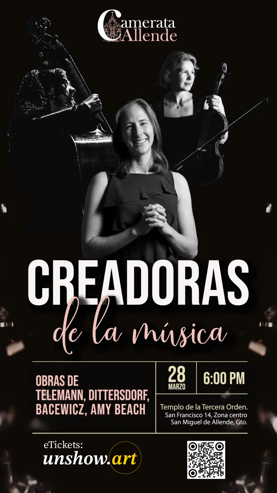 A concert celebrating the richness and diversity of female talent in music performance and composition. Featuring Madylin Alford, Djamilia Rovinskaia, and Dafne González, this program spans from the Baroque era to the 20th century, showcasing works by Amy Beach, Telemann, Dittersdorf, and Bacewicz.