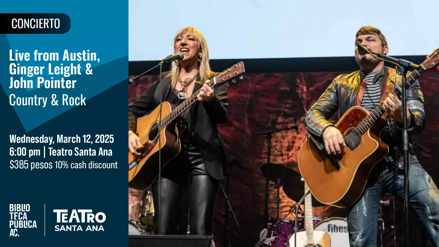 Straight from Austin, Texas, powerhouse chanteuse Ginger Leigh and acclaimed guitarist John Pointer bring an electrifying concert to San Miguel de Allende!