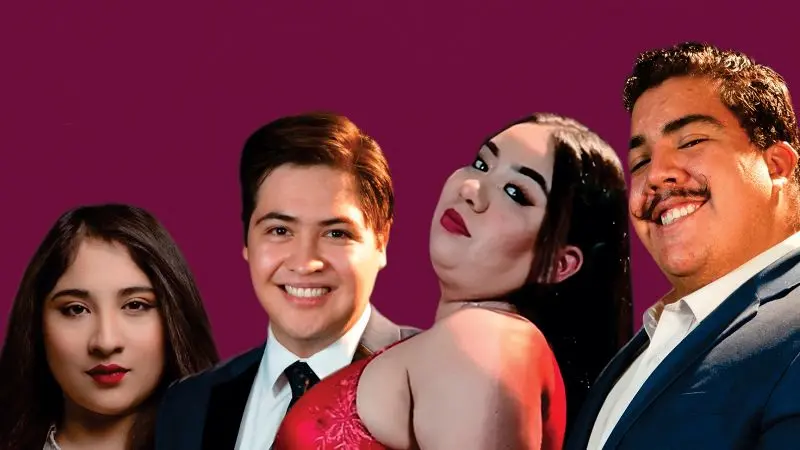 The singers are Nohemí Lozano, soprano, from Mexico City; Misael Corralejo, tenor, from León, Guanajuato; Daniela Cortés, mezzo-soprano, from Saltillo, Coahuila; and Esaú Álvarez, baritone, from Durango. The pianist is Andres Sarré.