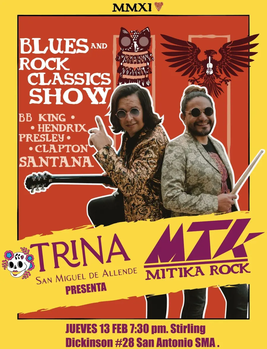 This Thursday! MITIKA ROCK at TRINA Contemporary Cantina, one of the best places in San Miguel de Allende to enjoy music and dancing. With the talent of Roman Sebastian Music and David Mendoza on drums and the groove of Chava Rock on the bass.