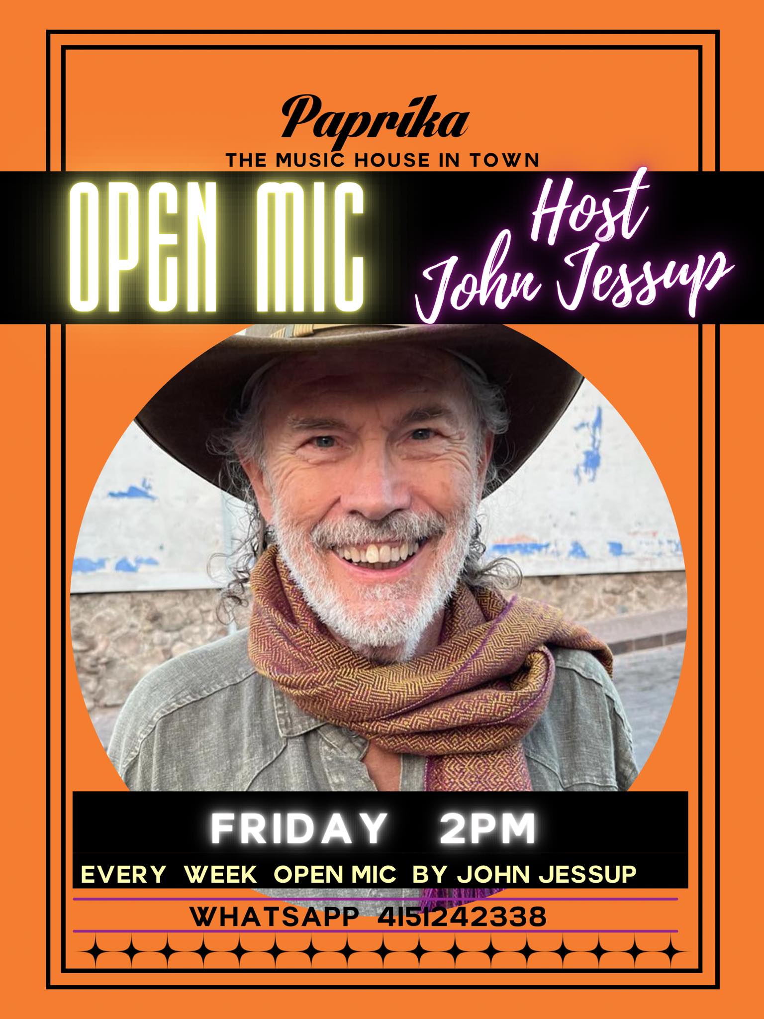 John Jessup's Open Mic/Open Stage! Every Friday at Paprika, The Music House in Town!