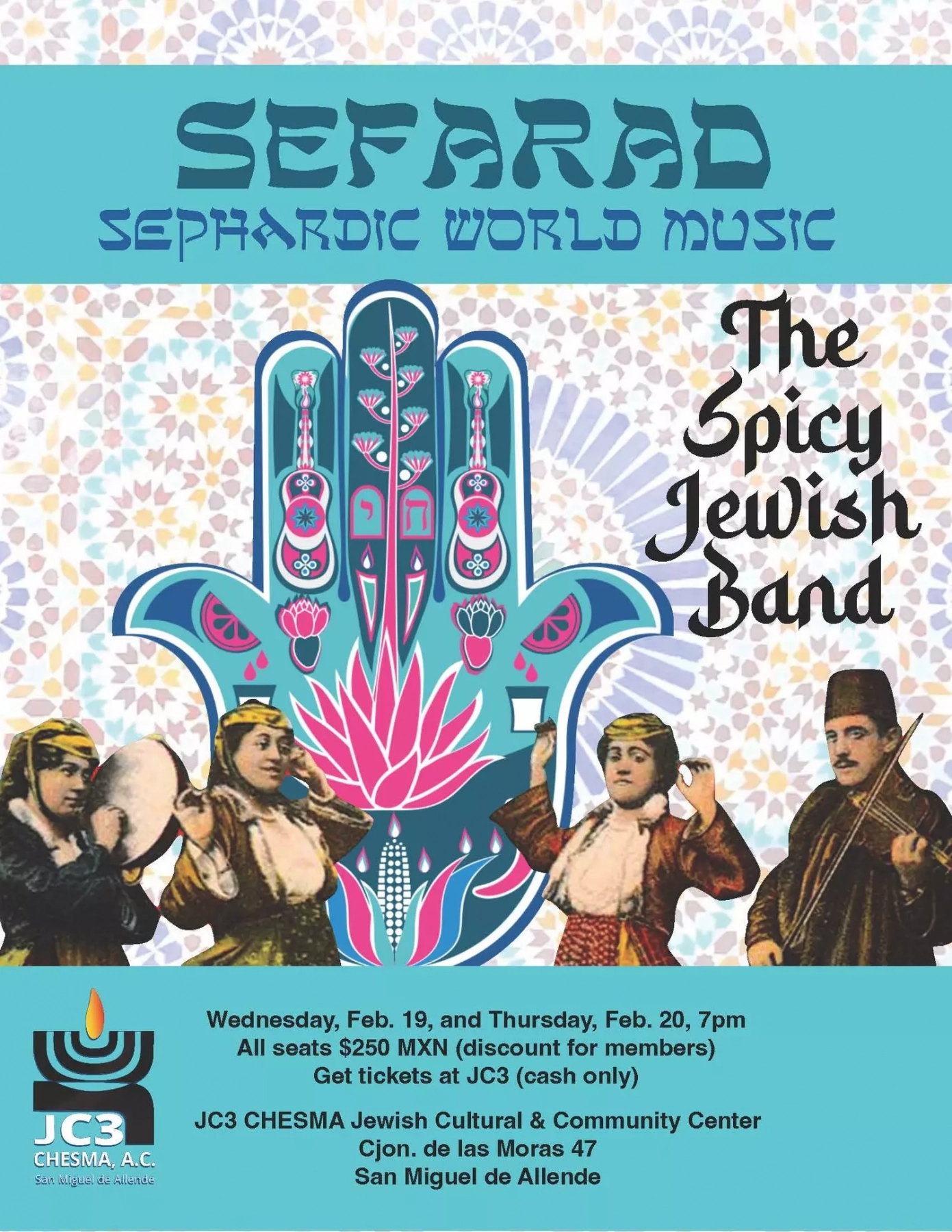 The Spicy Jewish Band is a Jewish music project led by Mario Moya and complemented by singers Nadia Merkel and Malki Ramos, all mexican Jews. Mario Moya is a Jewish composer, musician, and teacher born in San Miguel de Allende. He is a student of Ladino (Judeo-Spanish) and Sephardic culture.