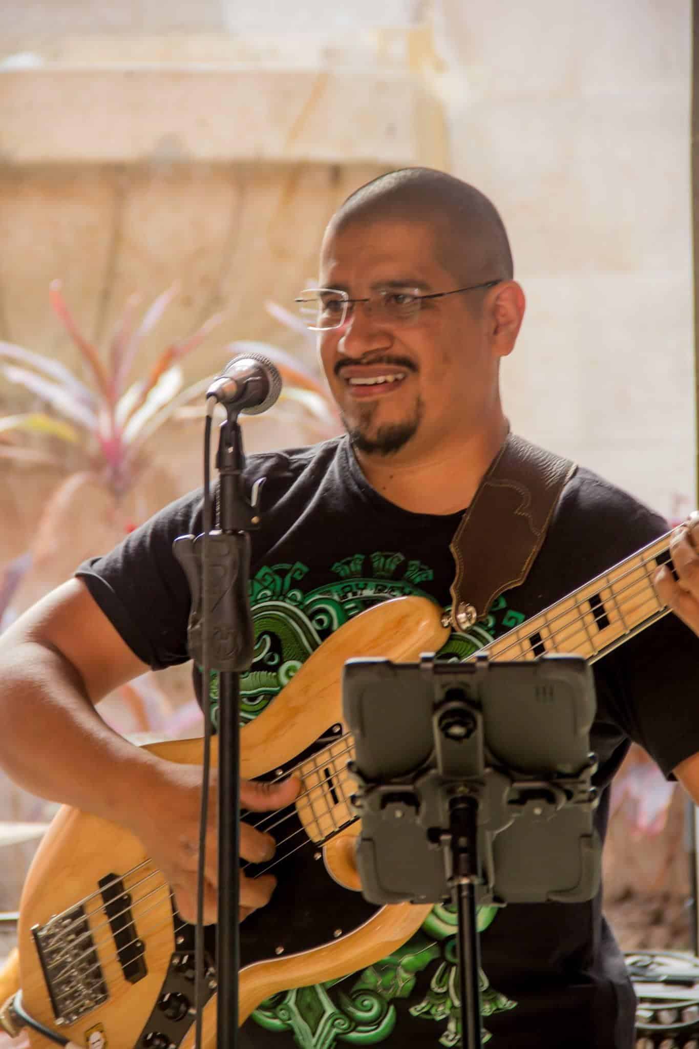 Today, Aarón plays and arranges music across genres including rock, jazz, blues, funk, salsa, and Latin fusion. He also performs as a singer and solo acoustic guitarist at clubs and at private events, offering an extensive repertoire of traditional and contemporary songs in both Spanish and English.