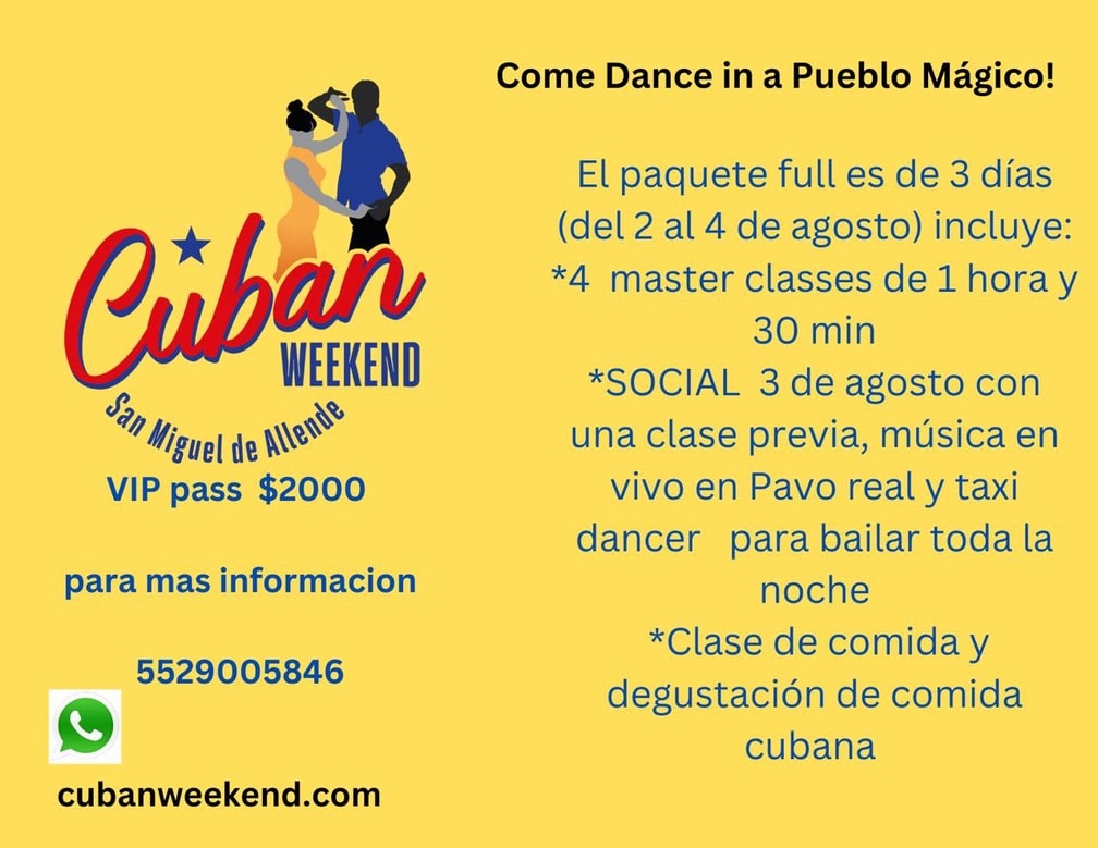 A weekend of celebrating Cuban culture through dance, music, and comida. We offer a yearly three-day workshop, including dance events with "taxi" dancers for followers. This year it is August 2-4. The weekend is for locals and out-of-towners.
