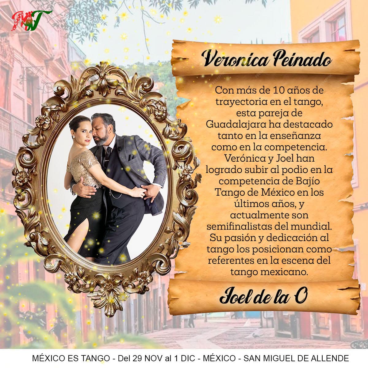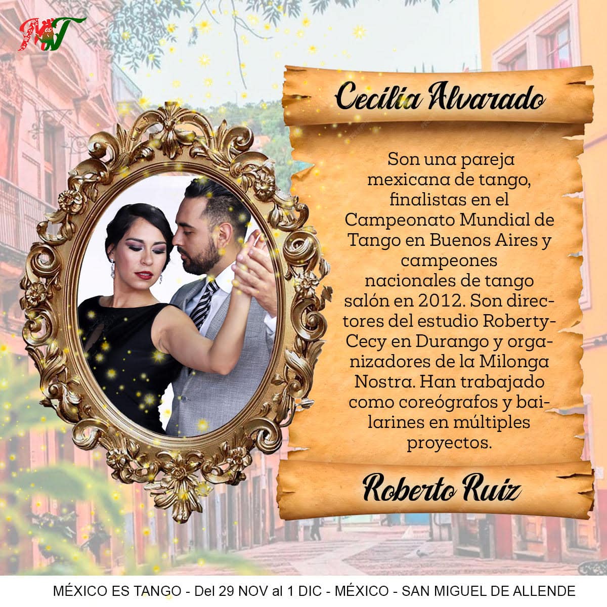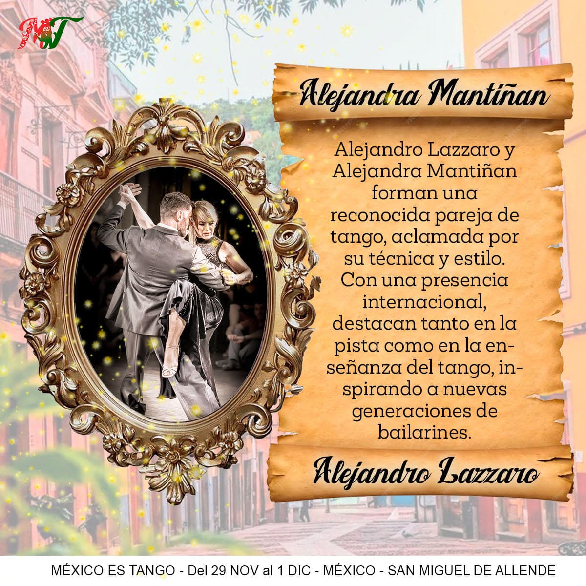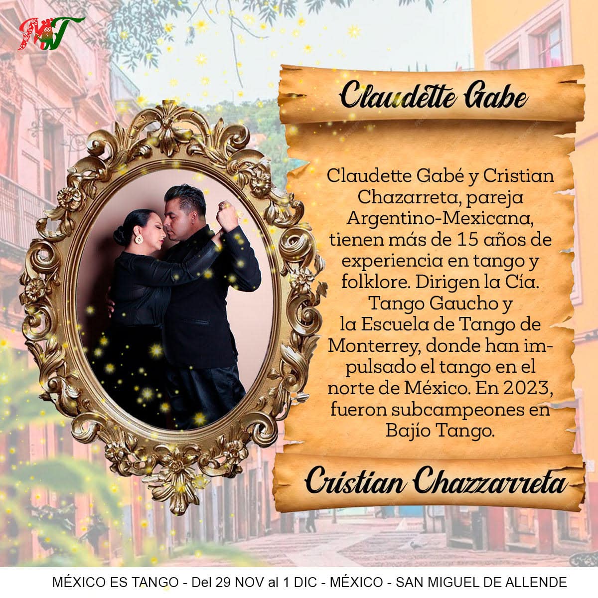 Enjoy master classes with renowned teachers such as Alejandra Martiñan and Alejandro Lazzaro, along with Mexican couples Claudette Gabe and Cristian Chazzarreta, Verónica Peinado and Joel de la O, and Cecilia Alvarado and Roberto Ruiz. Prepare to be dazzled by spectacular shows, guided practices, and unforgettable milongas under the colonial charm of San Miguel de Allende.