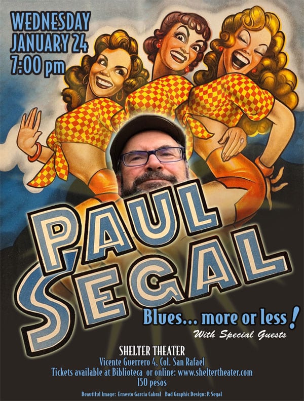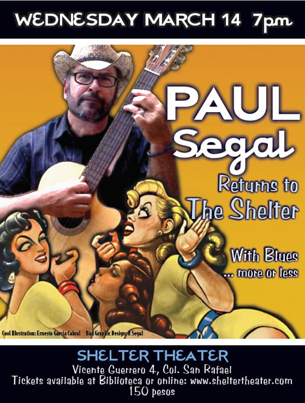 Paul Segal is a singer/guitarist musician who performs regularly in San Miguel as well as in France where he resides 6 months a year. He performs solo acoustic sets featuring music by Ray Charles, James Taylor, Sting, Stevie Wonder, etc. Paul also performs with his rock/pop/soul group, Bluesville.