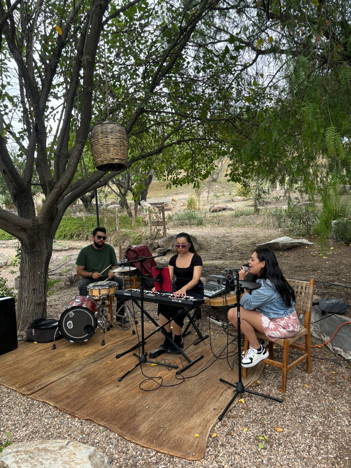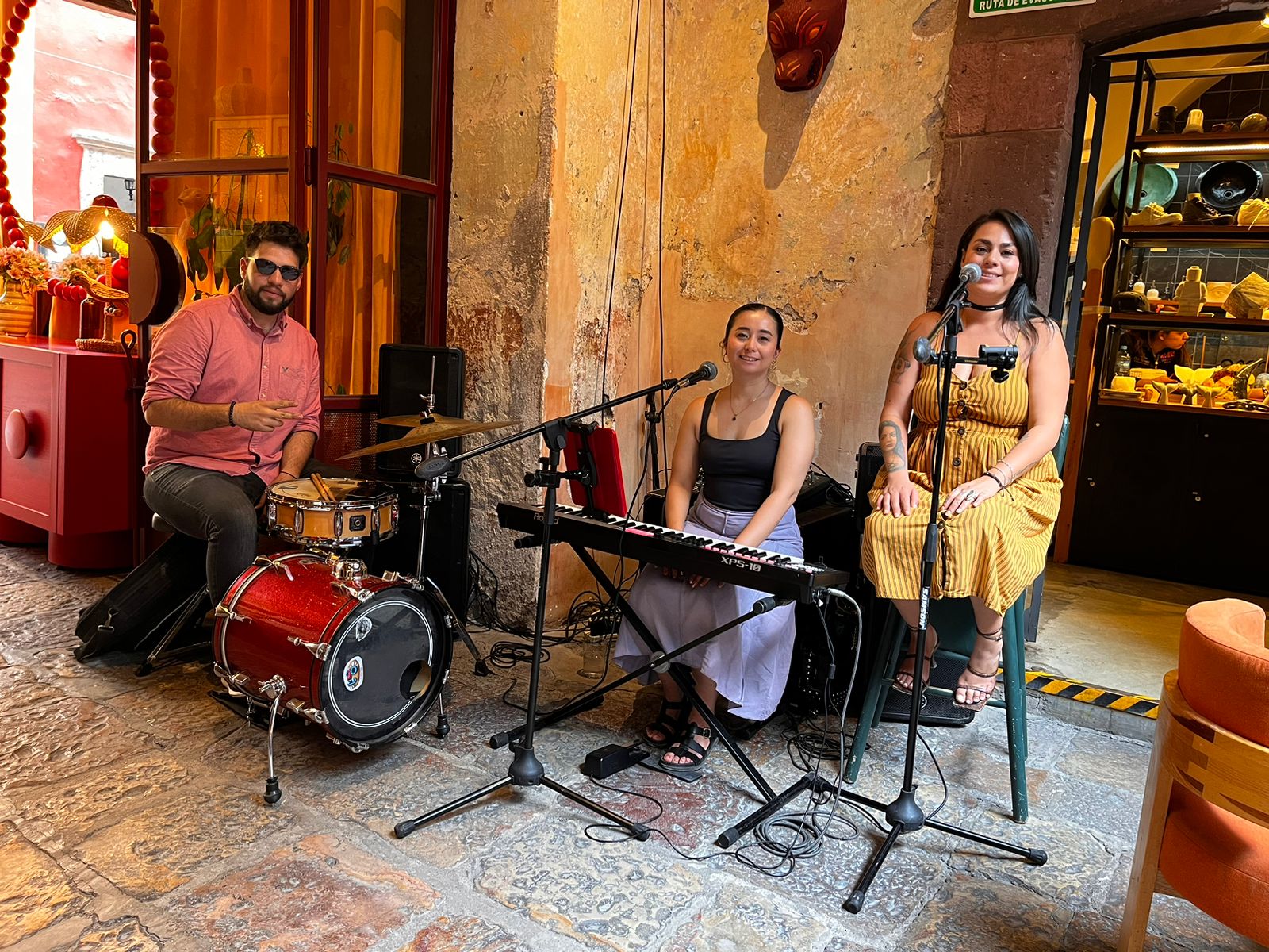 We play pop music, jazz, bossa nova, Latin rhythms in English and Spanish. We are in a trio format that consists of voice, piano and drums.