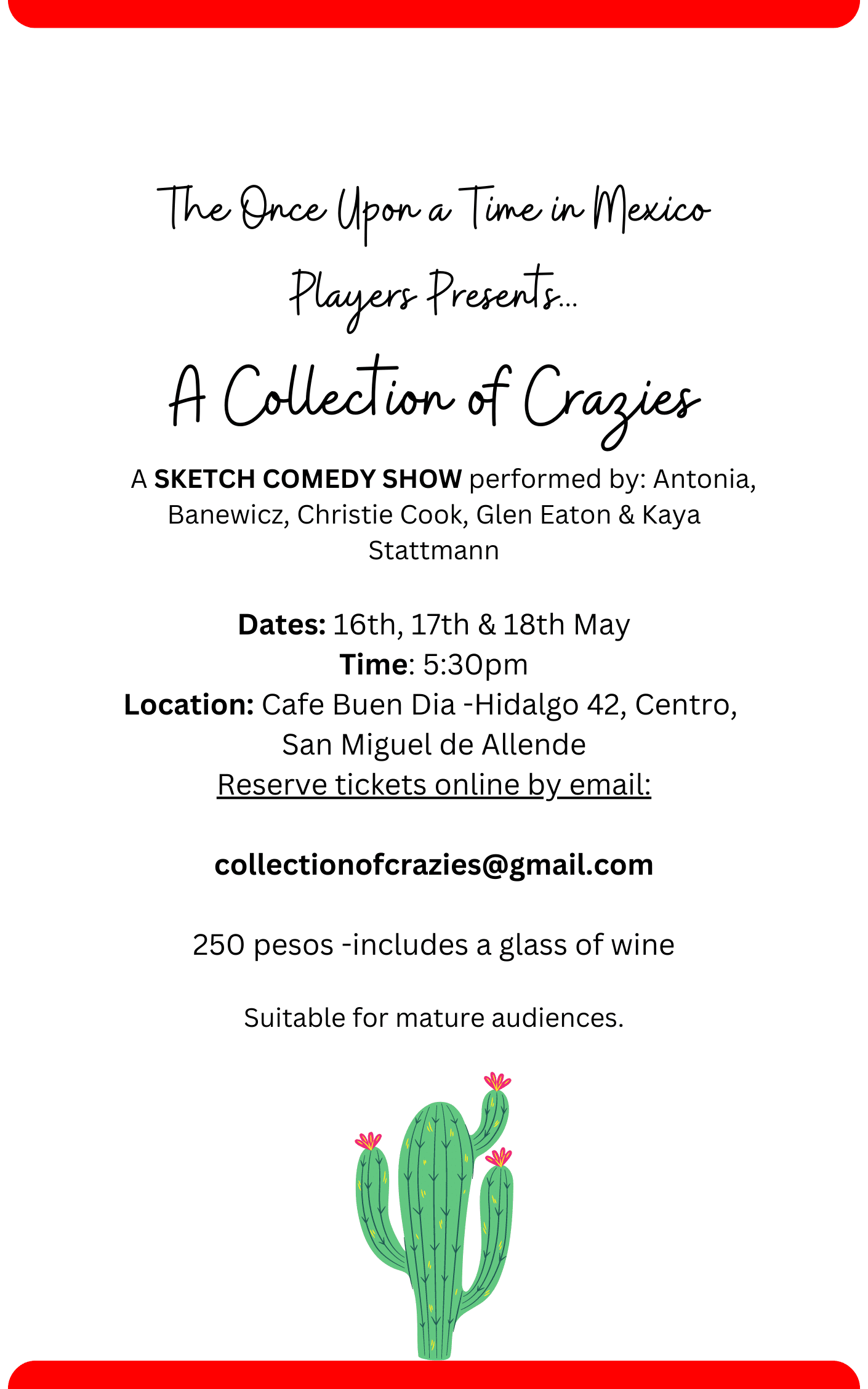 We are a new comedy troupe in SMA. Our company of four includes Antonia Banewicz, Glen Eaton, Christie Cook, and Frank Freschet. We've been professional actors and writers individually throughout our lives in Australia, NYC and LA. We formed our troupe in SMA this past year and we do comedy sketches.