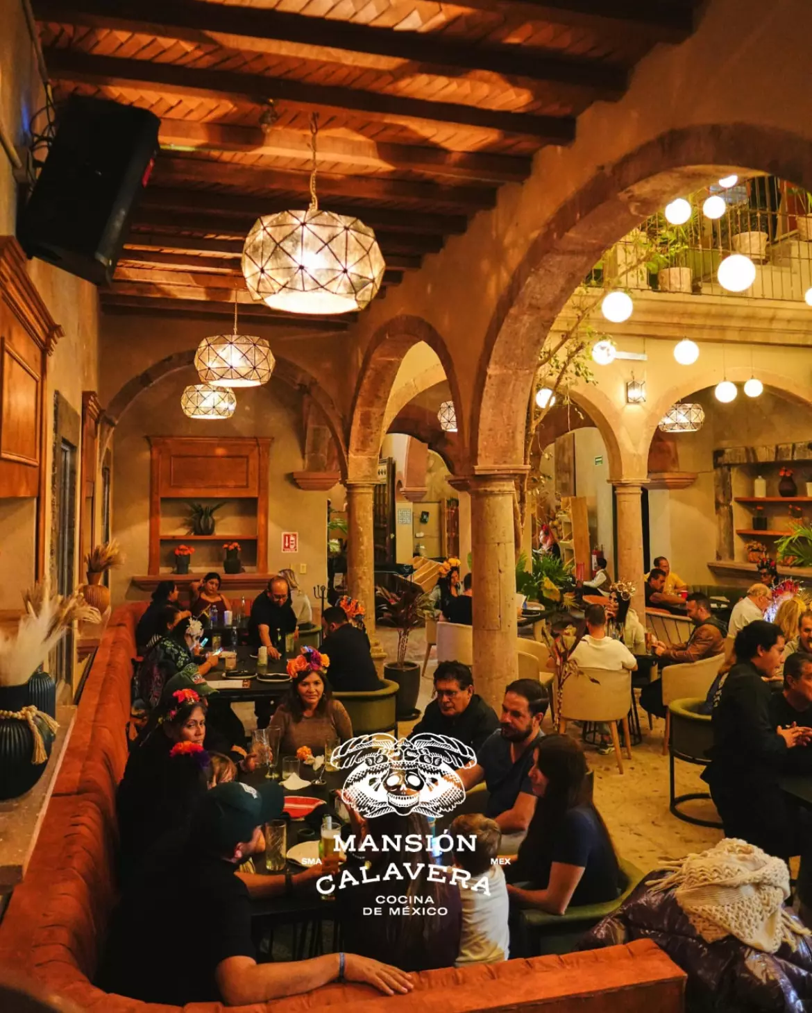"Mansi贸n Calavera" invites you to enjoy authentic Mexican cuisine and create unforgettable moments in the heart of San Miguel de Allende. Located on one of the main streets, our restaurant offers a unique experience with vibrant d茅cor, a warm, relaxing, and energetic atmosphere. Enjoy great drinks, signature cocktails, and Mexican craft beers, all surrounded by music and good company. Our menu features traditional dishes and modern twists, perfect for unwinding, celebrating, or sharing with friends. Come and experience the spirit and fiesta of Mexico!