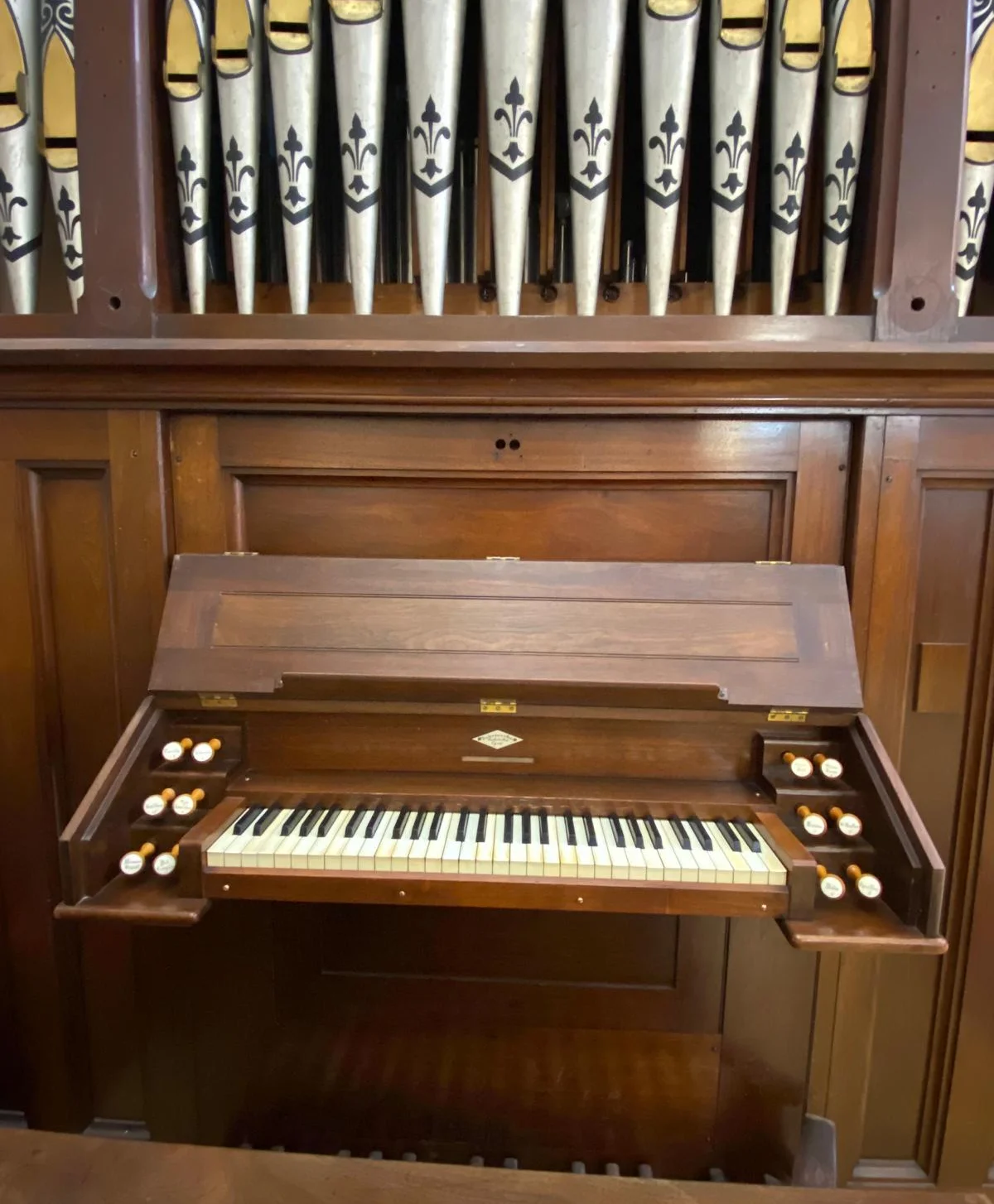 Currently, it's home to a historic 1875 pipe organ. The organ was relocated from Massachusetts to San Miguel in the fall of 2023. This lovely instrument of 8 stops, one manual and a 27 note pedalboard will be used in concerts sponsored by Chorale San Miguel, as well as in San Miguel's Organ Festival. The organ is also used in the Third Order Chapel's own religious observances and for other community events held in the Temple.